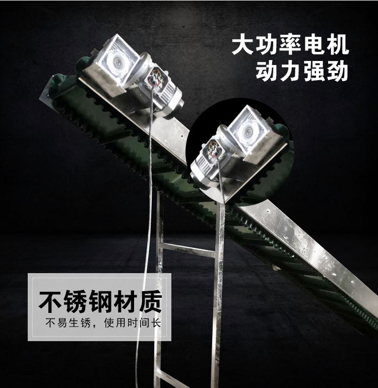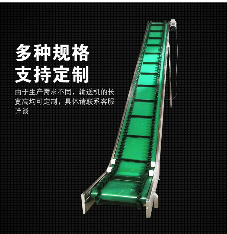 裙邊皮帶輸送機(jī)是在平形橡膠運(yùn)輸帶兩側(cè)粘上可自由伸縮的橡膠波形立式"裙邊",在裙邊之間又粘有一定強(qiáng)度和彈性的橫隔板組成匣形斗,對(duì)物料進(jìn)行連續(xù)輸送的設(shè)備。可大傾角輸送甚至垂直提升散料。