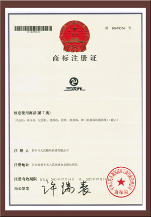• 三次元振動篩品牌注冊證書